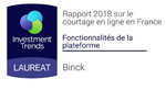 Dans cette enquête, Binck.fr remporte la 1ère place dans six autres catégories : meilleur choix d’investissements, meilleurs outils de recherche, meilleurs outils de conseils, meilleures idées de stratégies de trading, meilleure gamme de choix d’ordres et meilleure analyse technique.