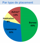 Les fonds immobiliers atteignent 100 milliards d’euros d’actif net à fin 2017, en progression de 20,5% sur l’année (respectivement +11 milliards pour les OPCI et +6 milliards pour les SCPI). Les ménages détiennent directement 36% des parts de fonds. Les rendements 2017 des OPCI grand public, accessibles aux particuliers, via la détention en nominatif pur ou via les contrats d’assurance-vie affichent un rendement moyen de l’ordre de 3.50%. Du côté des SCPI, le rendement moyen 2017 est sensiblement plus élevé, de l’ordre de 4.43%. Les meilleures SCPI 2018 publient même des rendements supérieurs à 6%. Les immeubles de bureaux représentent 49 % des placements et l’Ile de France (Paris inclus) 61%.